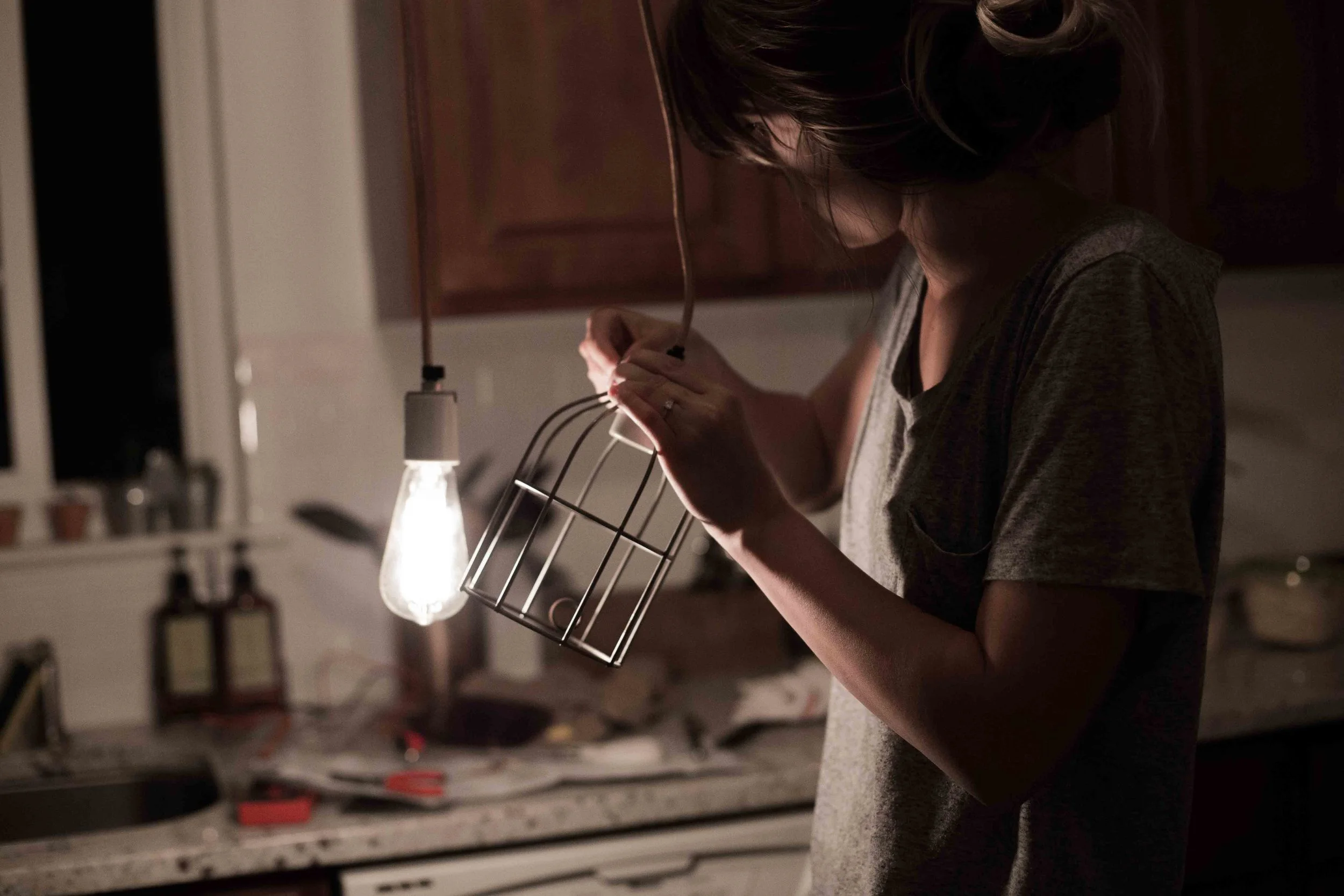 After the cords were attached to the sockets, we screwed on the cages (very simple) & measured out where each copper hook would go for the draping look we were going for. This is when it became a 3 man team of Kyle, Jody & I! We started hanging them at sunset so as you can see in the pictures, Kyle's headlamp did us wonders. We removed the bowl lamp that was previously hanging, thread the cords through, & screwed the 3 port fixture into the ceiling. Zip tie the cords to keep them from moving off the hooks & wa-lah! The process took longer than it sounds, mainly because caution is extremely important when it comes to electrical work, as well as precision. I'm grateful Kyle & Jody have a knack for meticulous work because I'm lacking that bone. Below is a list of materials we used to achieve this look! However, I recommend taking a look at all of the options on CC website! If this sounds a bit too DIY for you, they also have pre-assembled cords like these, that are a great option too.